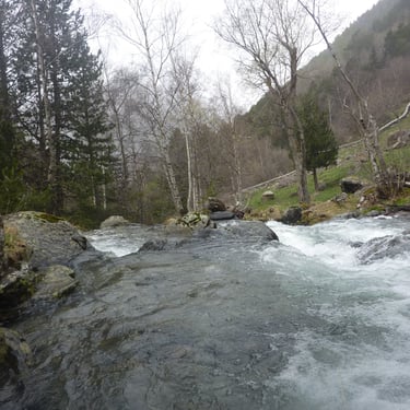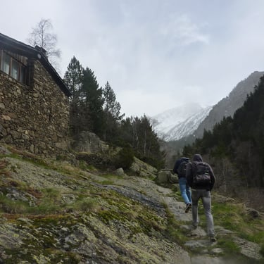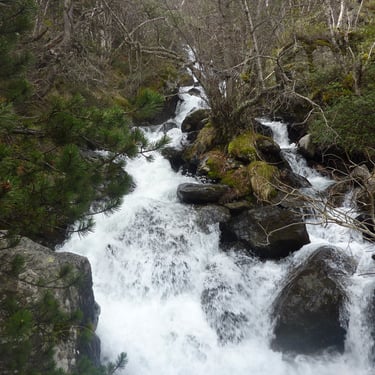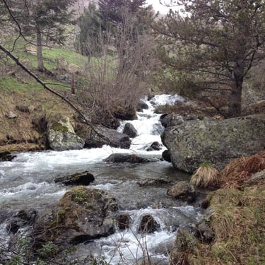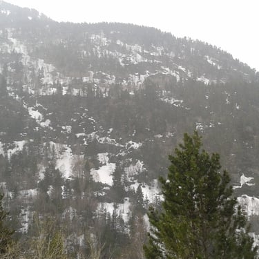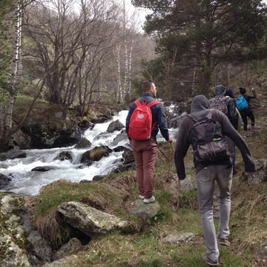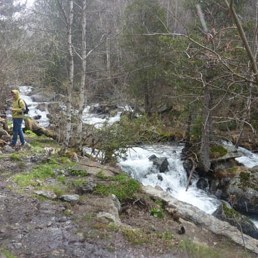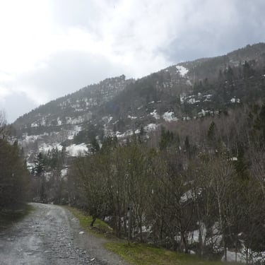 Since we had a personal driver, we asked him to take us to places where there is access to the mountains the next day. Within 15-20 minutes we were in the mountains from Andorra la Vella, where it was sunny, and it was cold and snowing. The climb was quite a chore. We scrambled over large boulders, mountain rapids, fallen trees, sharp rocks. In some places it was snowing.